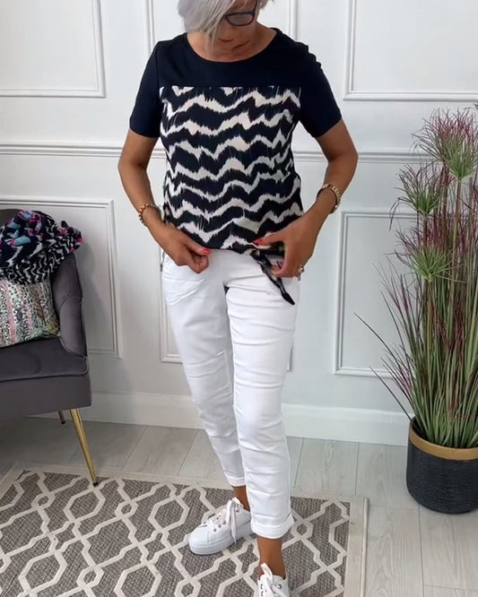 Chemise à manches courtes avec boutons à revers imprimés colorés
