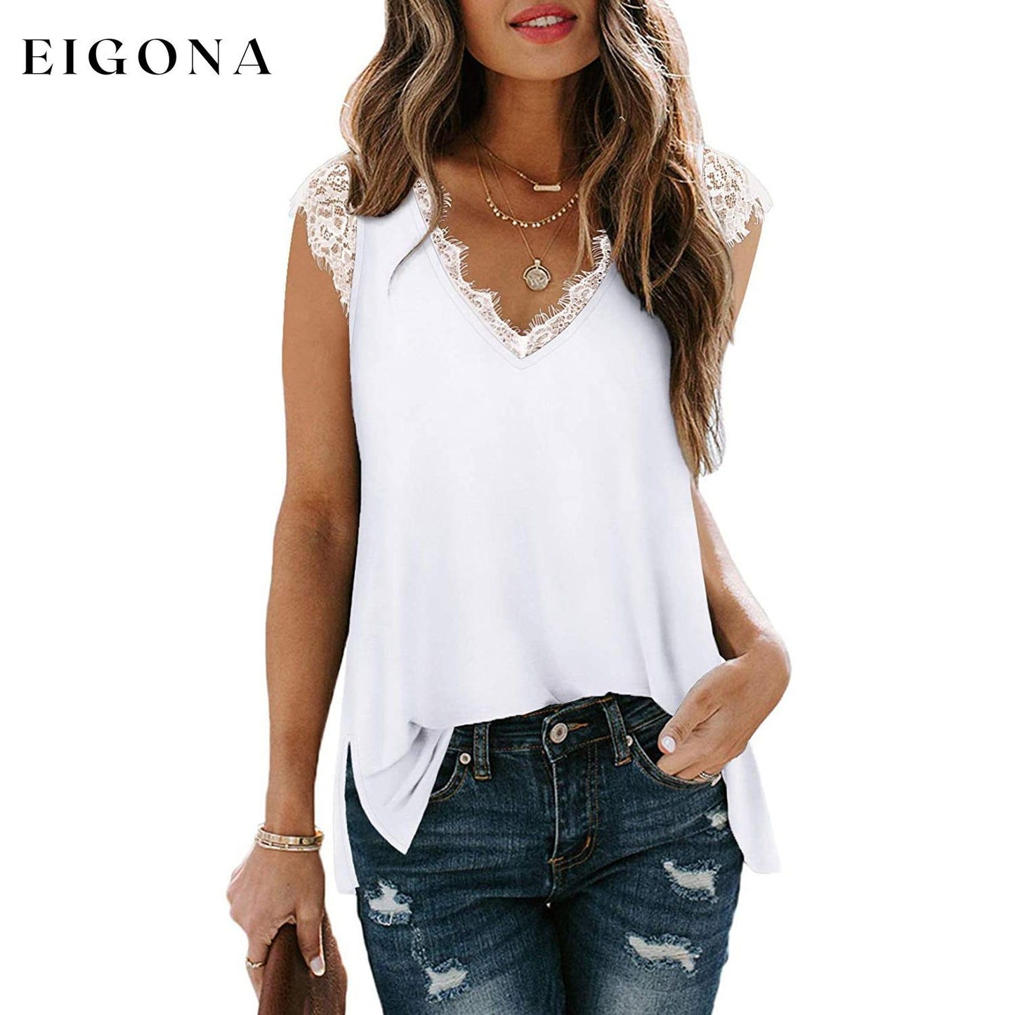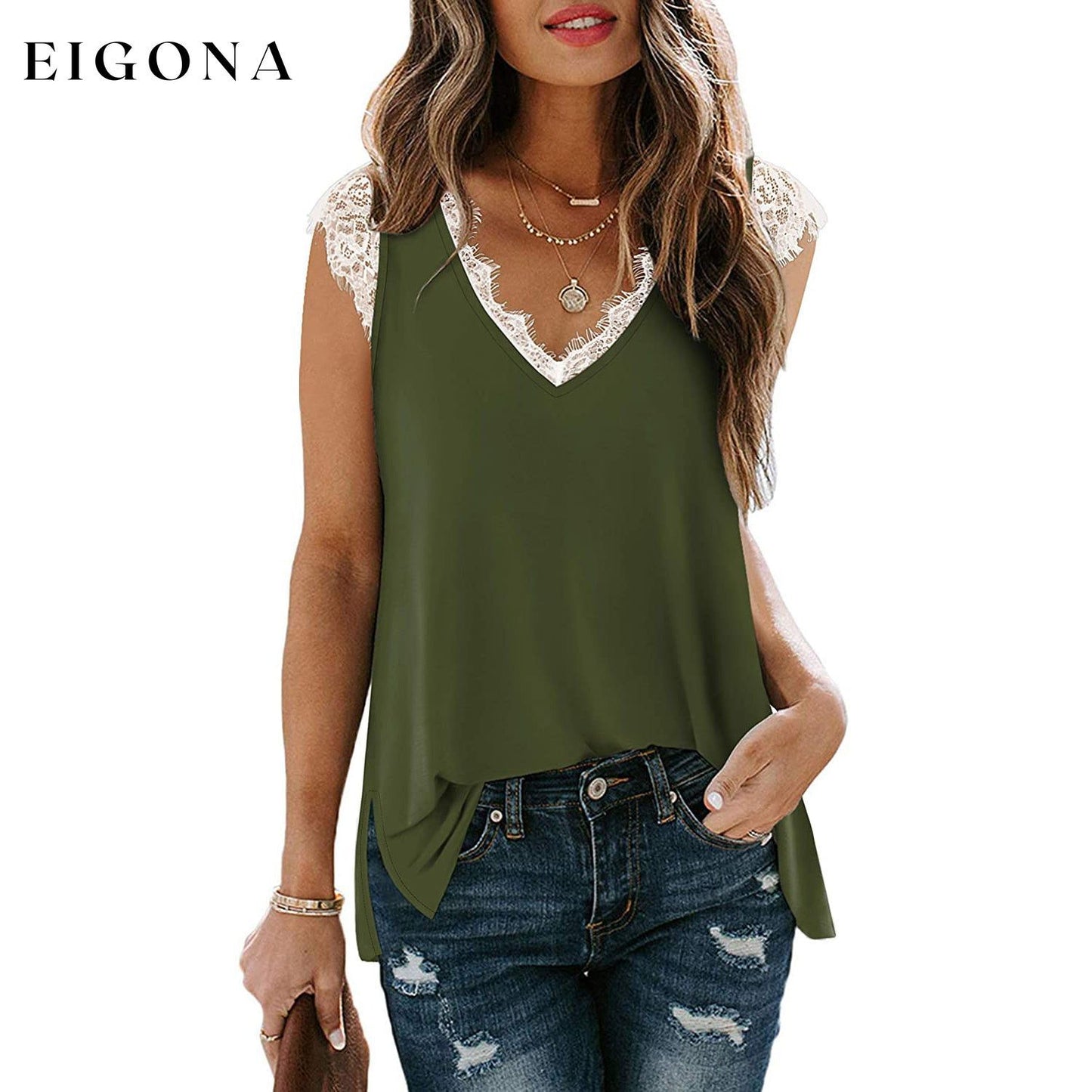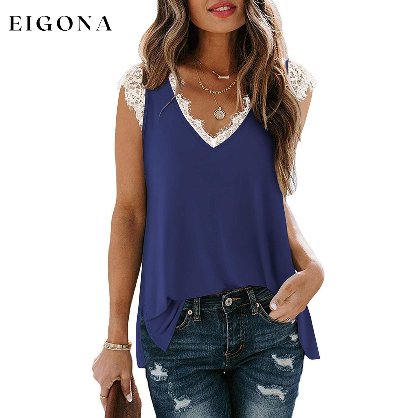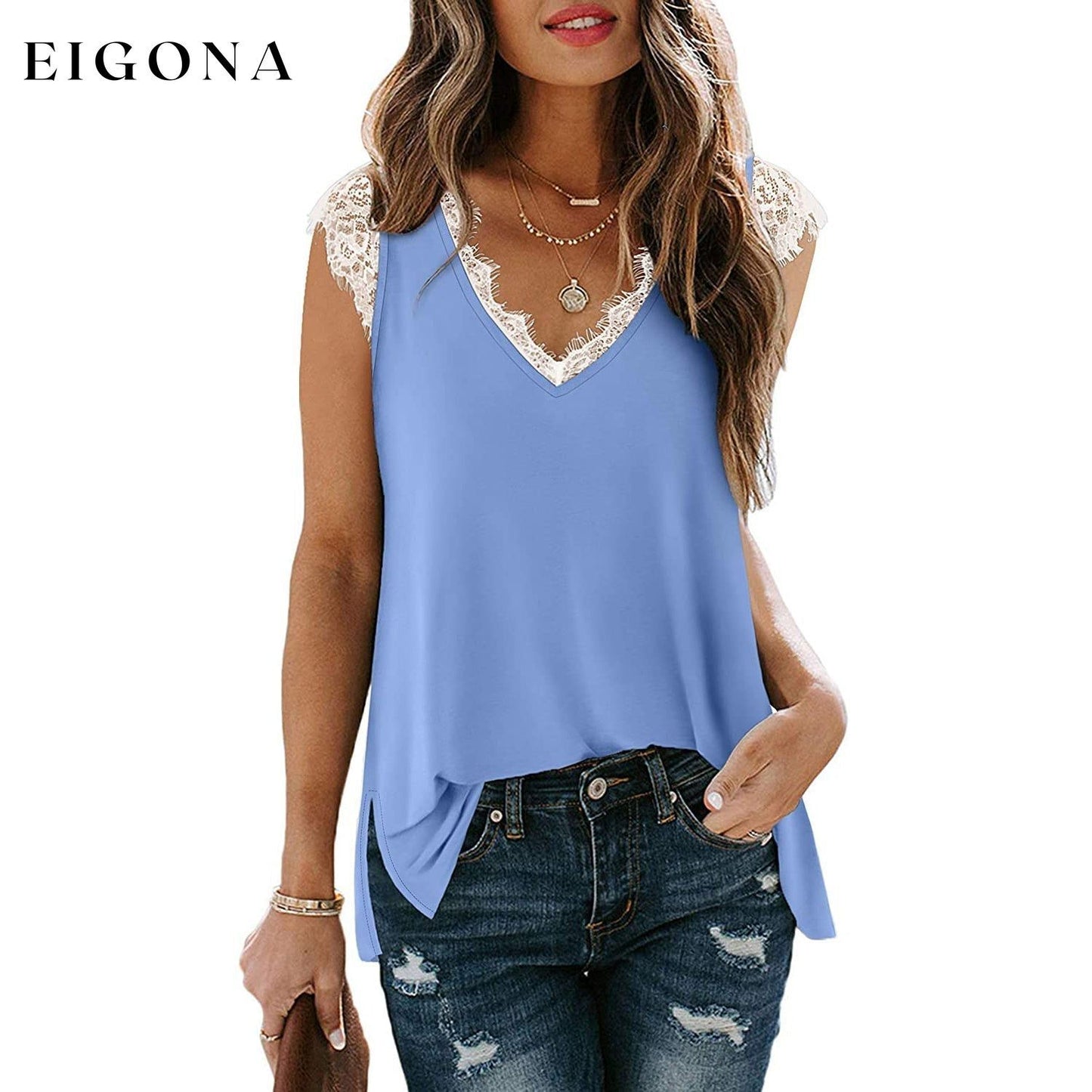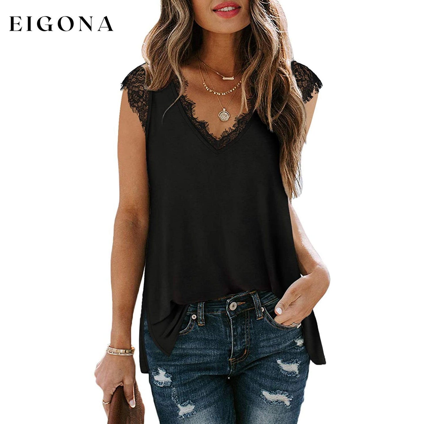 - Design : débardeurs sexy à col en V, hauts sans manches, bordure en dentelle, hauts tuniques amples et fendus sur les côtés