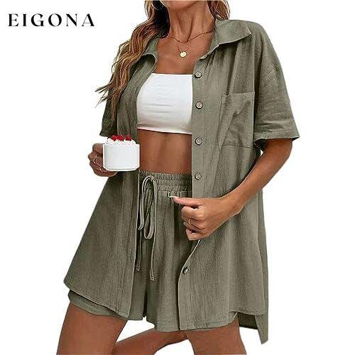 Set da 2 pezzi: set coordinati per il salotto da donna, pantaloncini di lino, top corti
