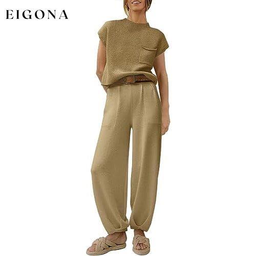 Set da 2 pezzi: top pullover in maglia da donna e set da salotto con pantaloni a vita alta