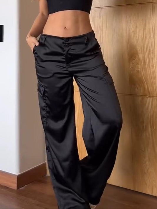Pantaloni da lavoro casual in raso tinta unita da donna