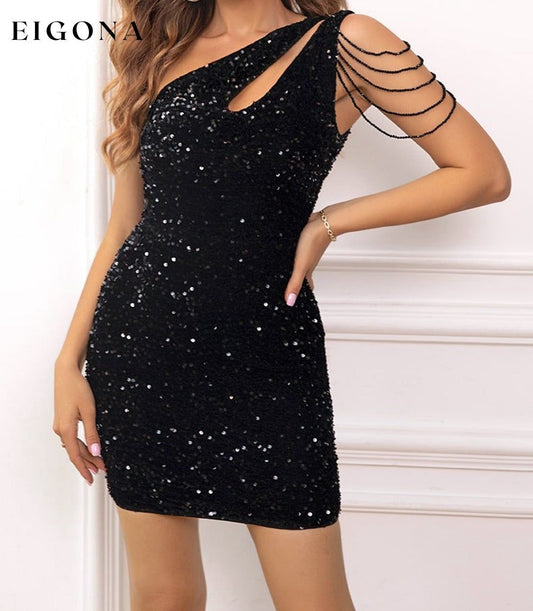 Mini abito da festa sexy senza maniche con paillettes a contrasto
