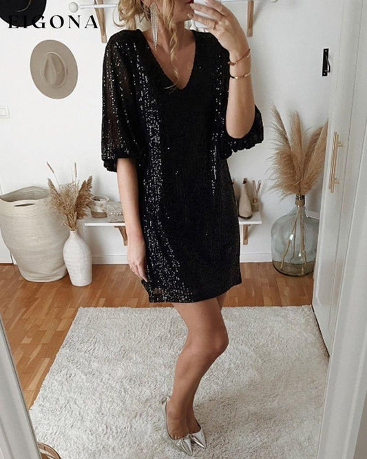 Abito sexy al ginocchio a maniche lunghe con paillettes