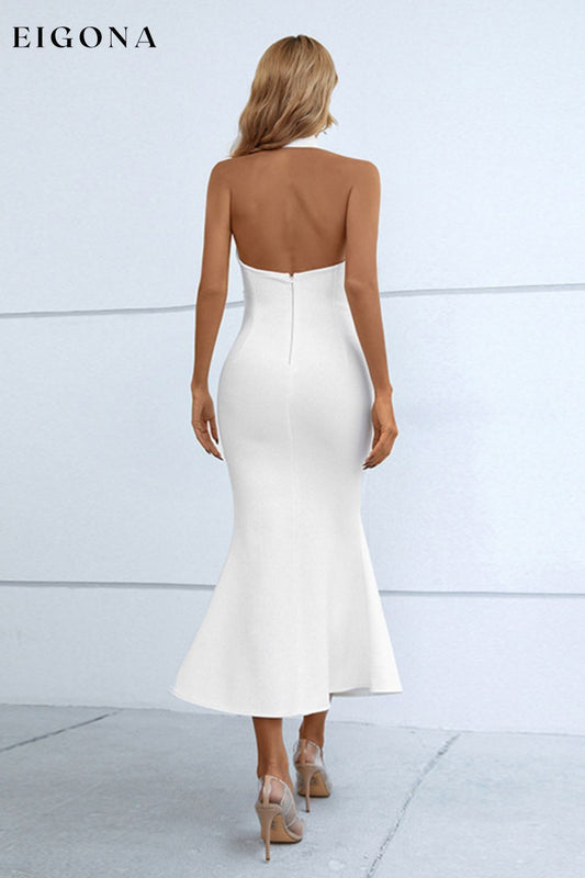 Abito midi ritagliato aderente con scollo all'americana e coda di pesce divisa