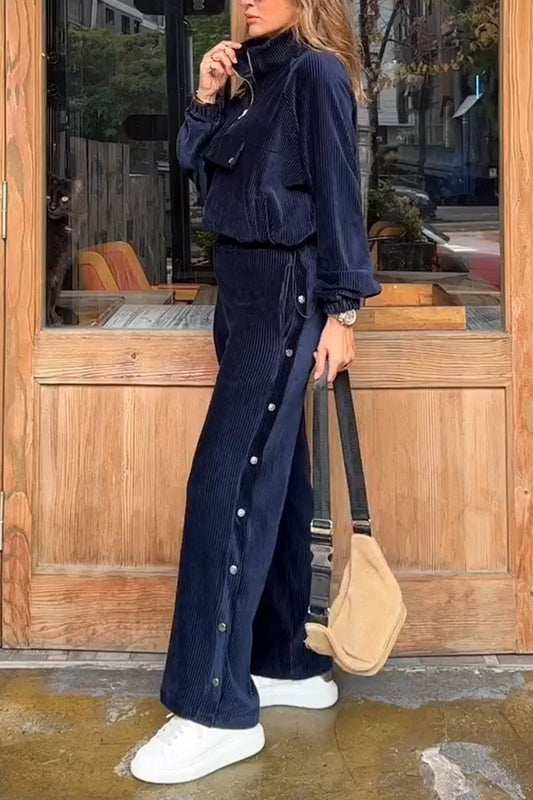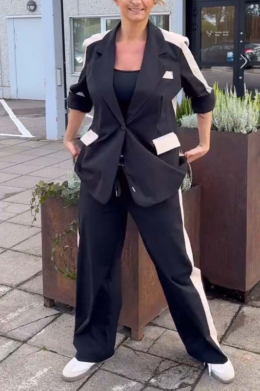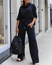 Completo casual da donna in tinta unita con risvolto, primavera e autunno