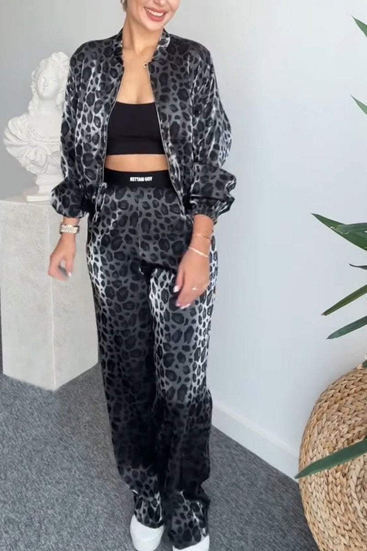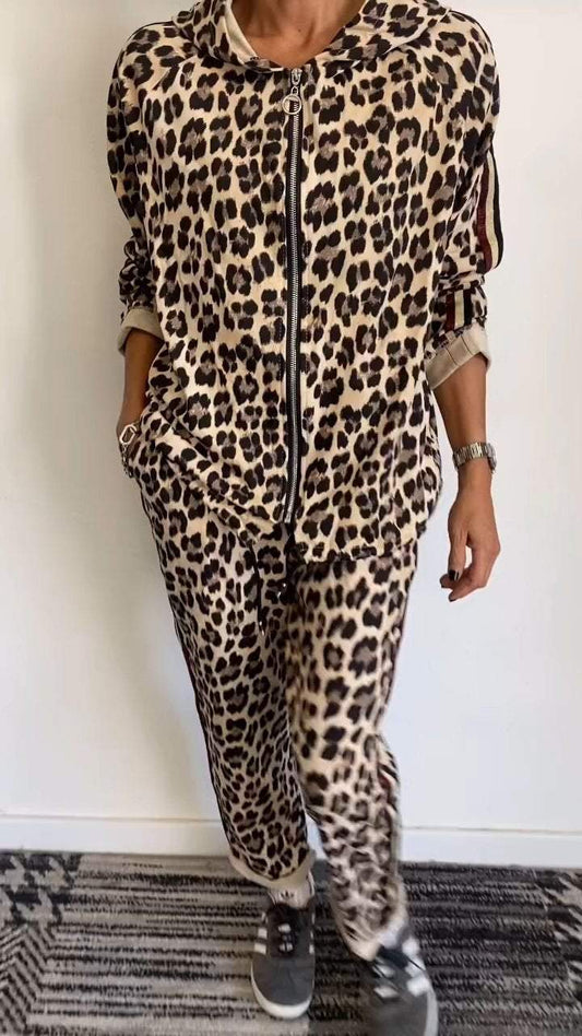 Tuta casual con cappuccio e maniche lunghe con stampa leopardata