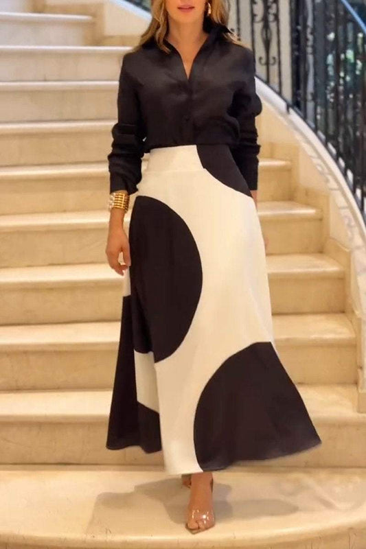 Completo gonna-camicia tinta unita da donna per primavera e autunno