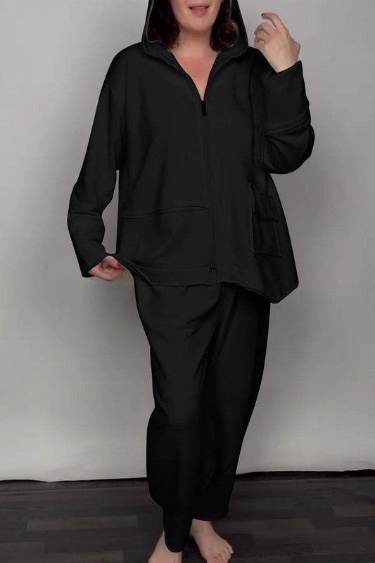 Completo casual da donna in due pezzi con cappuccio, tinta unita