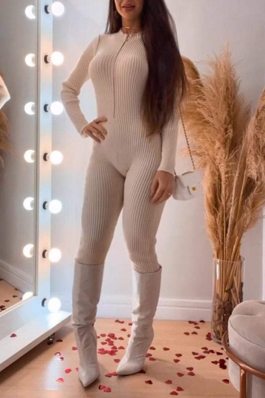 Tuta casual con scollo tondo e maniche lunghe da donna