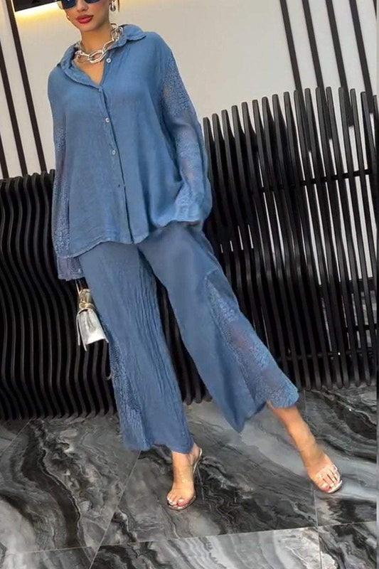 Completo da donna primavera e autunno con camicia e pantaloni tinta unita