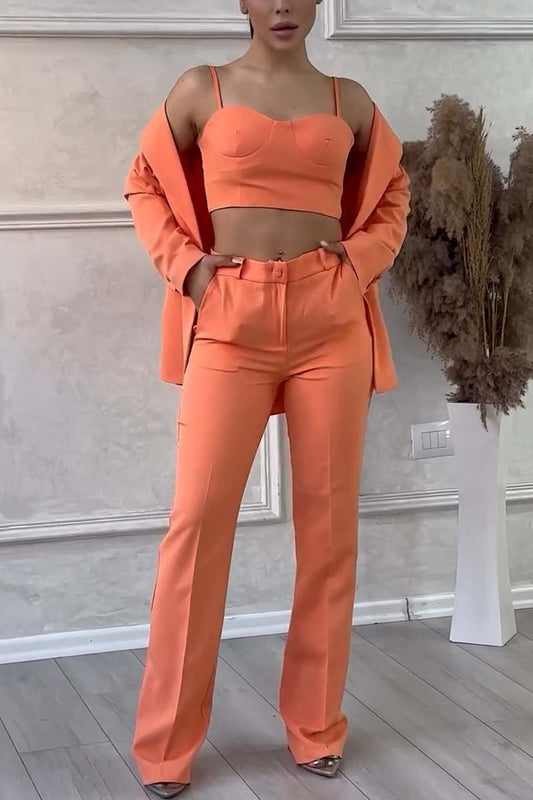 Completo giacca e pantaloni con cerniera tinta unita da donna