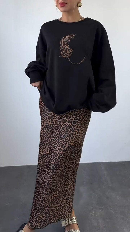 Abito da donna in maglia con stampa leopardata a maniche lunghe e scollo tondo