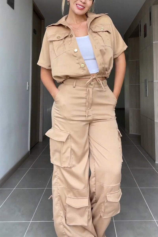 Completo casual da lavoro a maniche lunghe con risvolto da donna