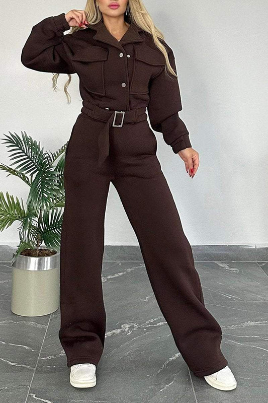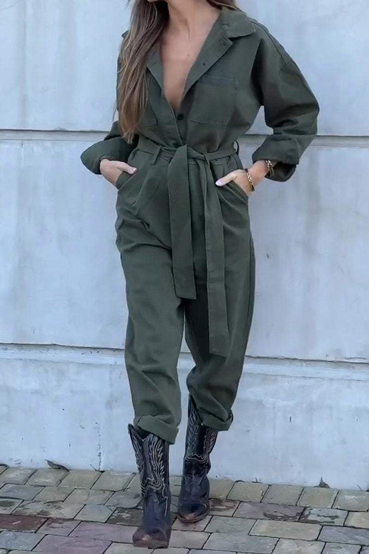 Tuta casual da lavoro a maniche lunghe con risvolto da donna