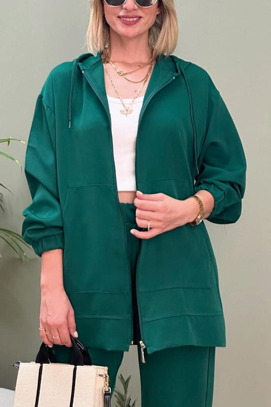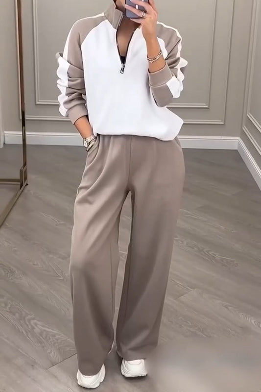 Giacca sportiva casual da donna con cerniera e pantaloni a gamba larga