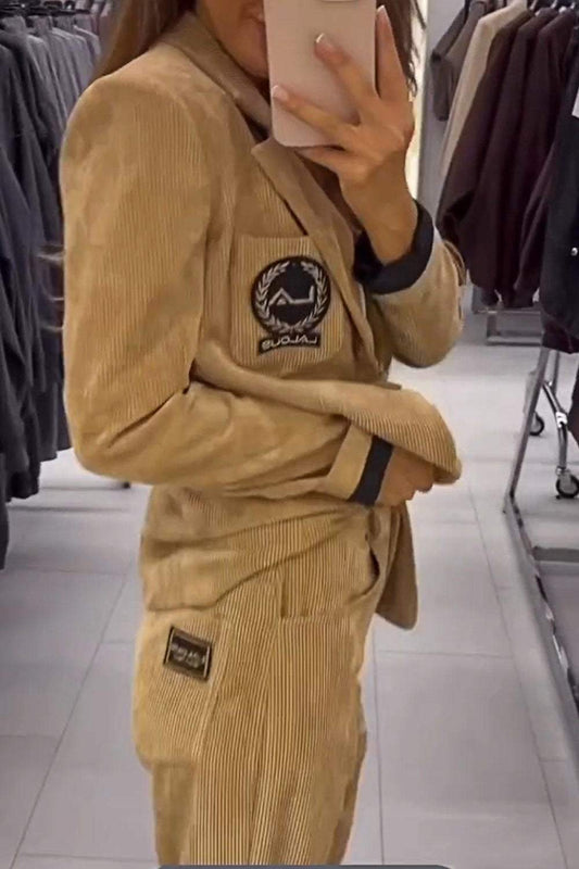 Completo da donna in velluto a coste con giacca e pantaloni in due pezzi