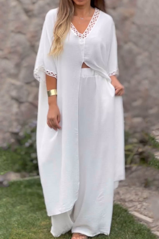 Tuta elegante da donna con scollo a V e senza maniche, in due pezzi