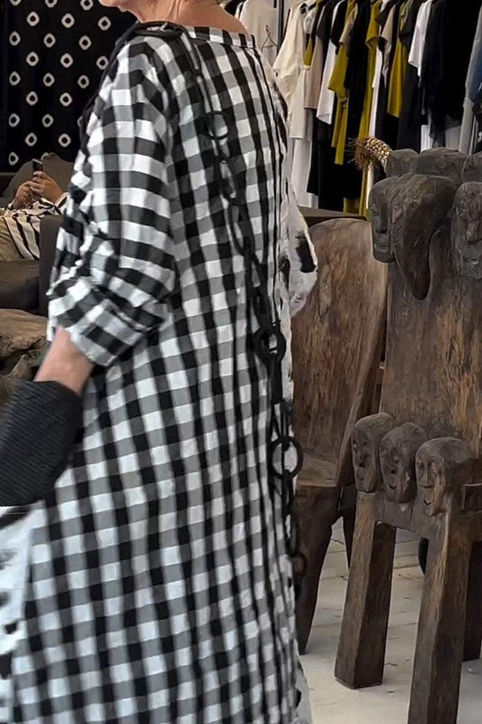 Abito casual da donna con risvolto e maniche lunghe con stampa oro