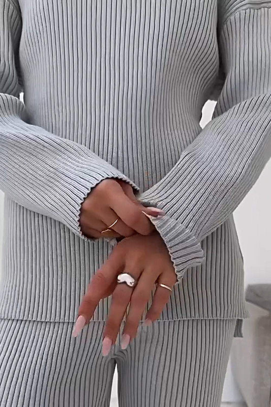 Maglione da donna lavorato a maglia con collo alto e pantaloni, set da due pezzi