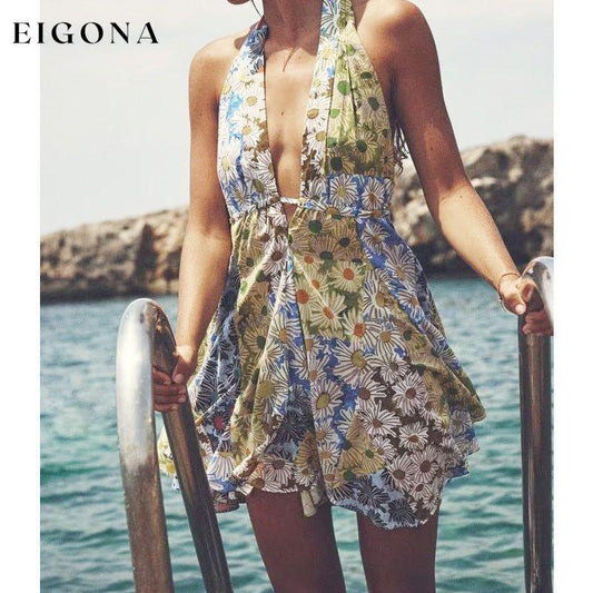Nuovo abito corto alla moda con scollo a V e reggicalze stampato sexy