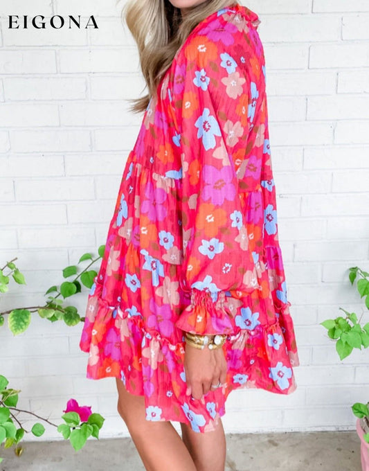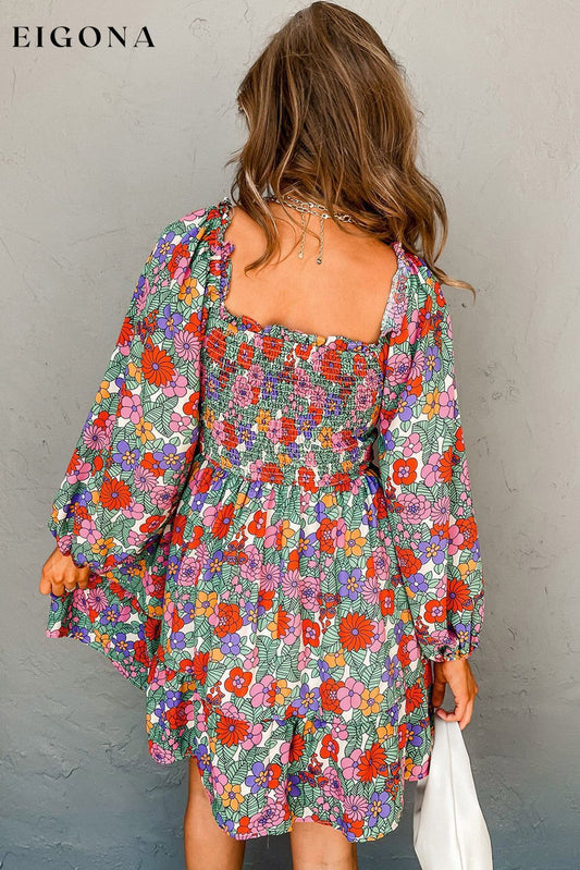 Abito babydoll a strati con maniche a palloncino floreali multicolori