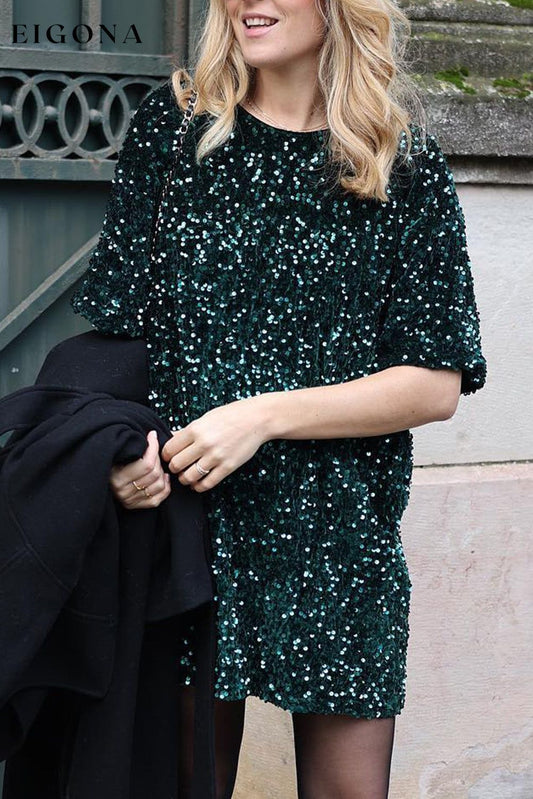 Miniabito Skobeloff in velluto a maniche corte con paillettes