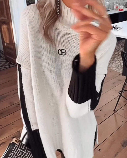 Maglione dolcevita a contrasto da donna