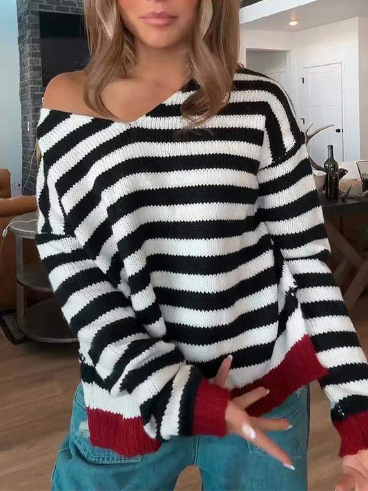 Maglione a righe con scollo a V da donna