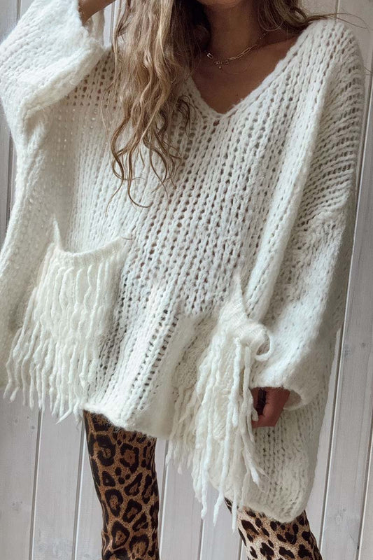Maglione casual da donna con scollo a V e tasche larghe