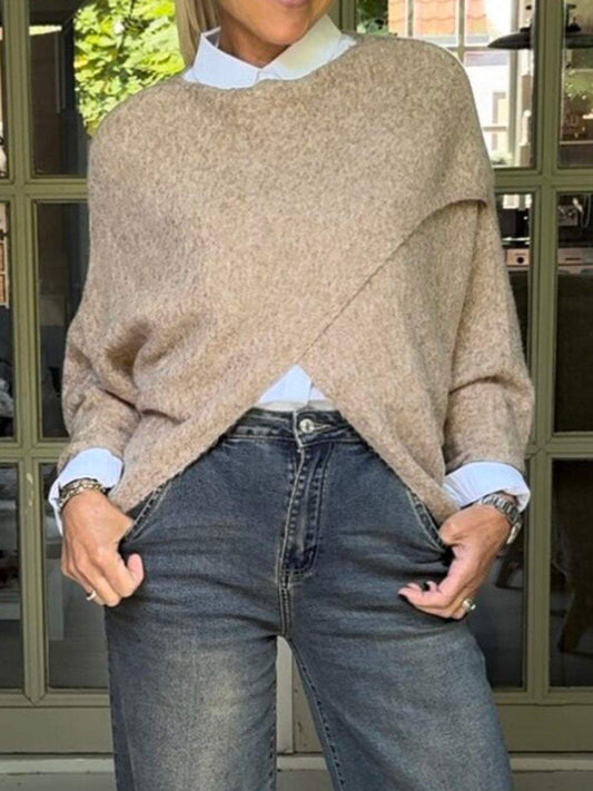 Maglione incrociato casual da donna in tinta unita