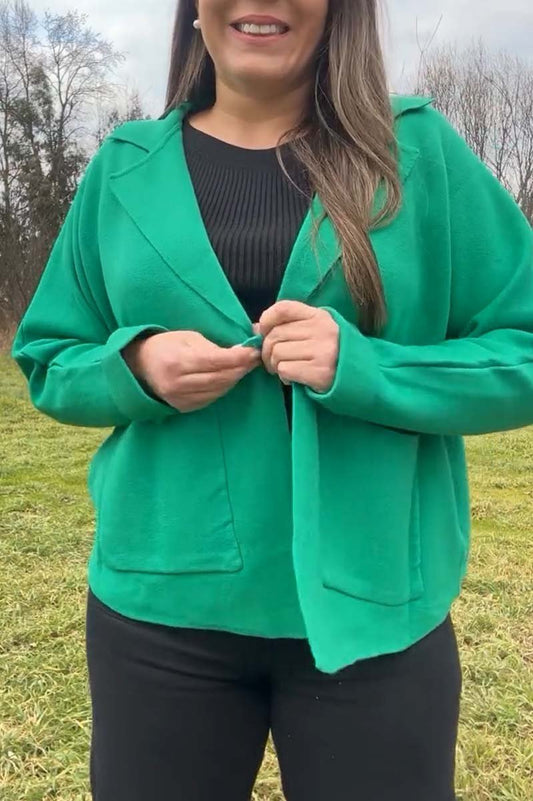 Cardigan corto lavorato a maglia a maniche lunghe con risvolto, casual, tinta unita, da donna