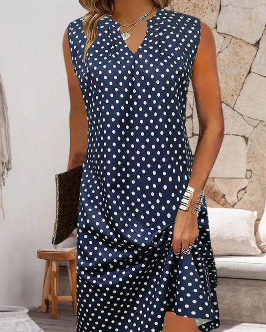 Polka dot print sleeveless elegant dress