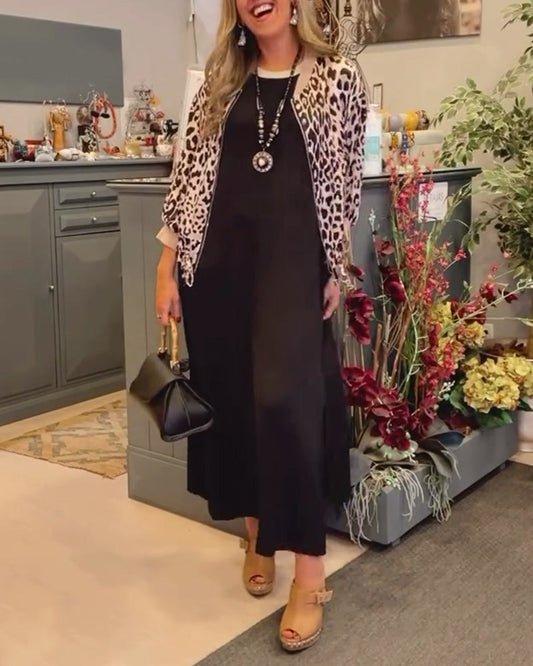 Giacca a maniche lunghe con bottoni e stampa leopardata da donna per autunno e inverno