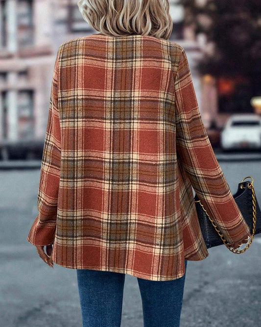 Giacca da abito monopetto a quadri con risvolto casual da donna