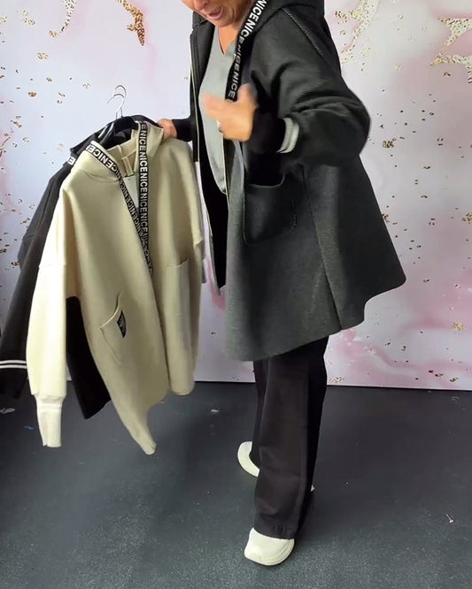 Cappotto casual con cappuccio e cerniera stampata con lettere