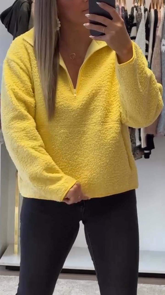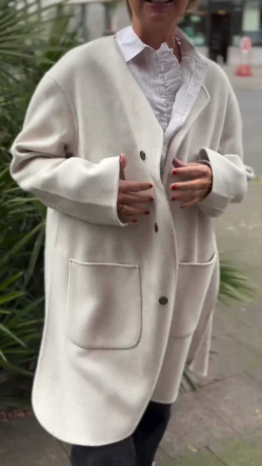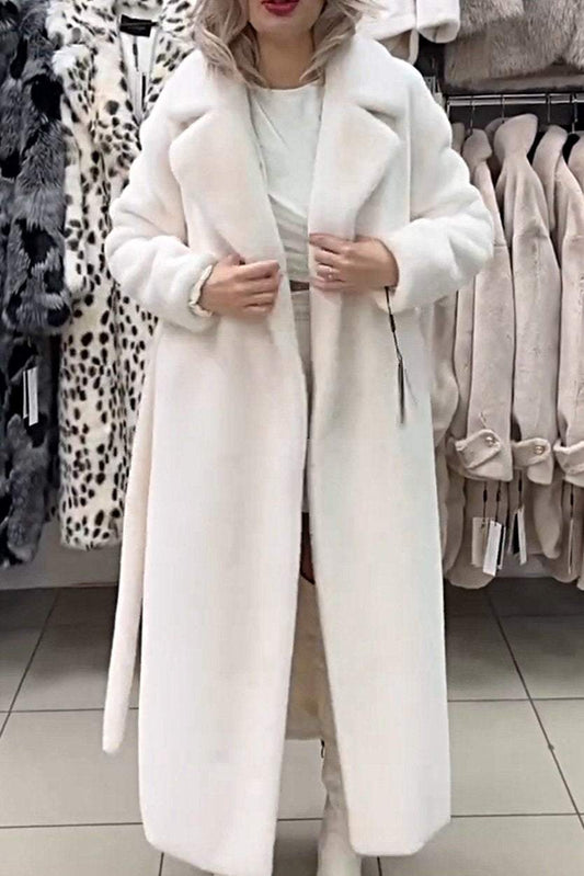 Cappotto casual da donna con risvolto e effetto increspato, in peluche bifacciale