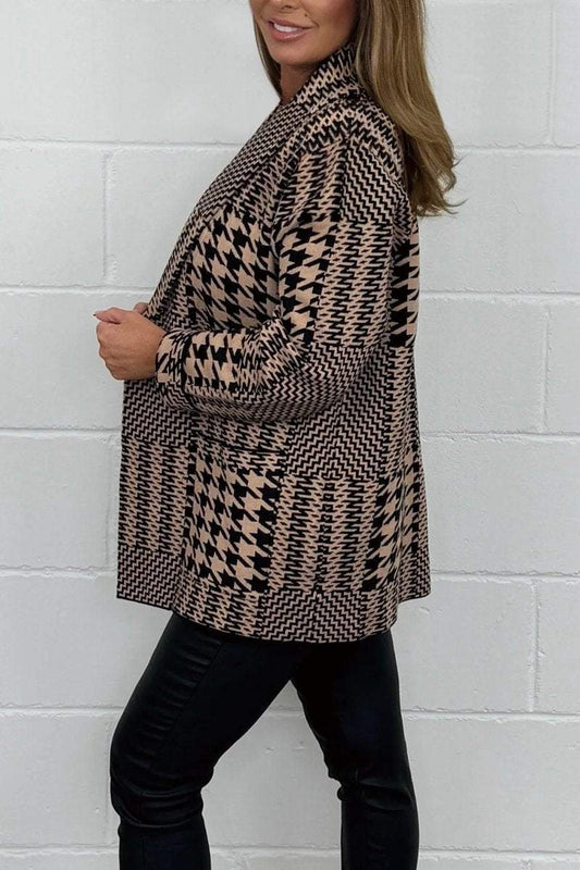 Cappotto a maniche lunghe con colori a contrasto a quadri alla moda