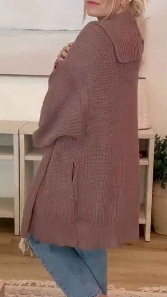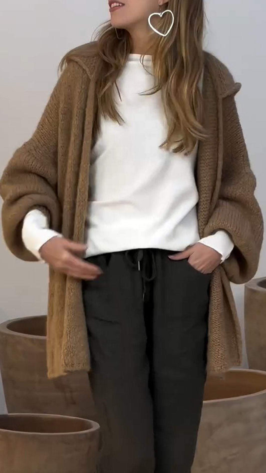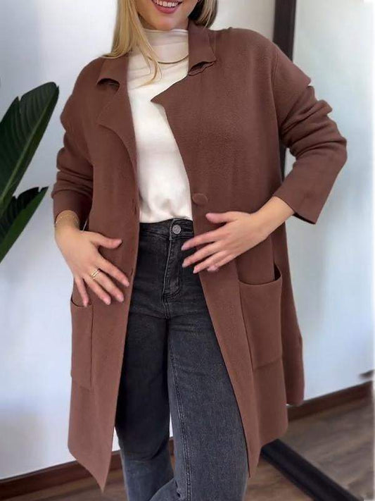 Giacca in maglia casual a maniche lunghe con risvolto largo da donna
