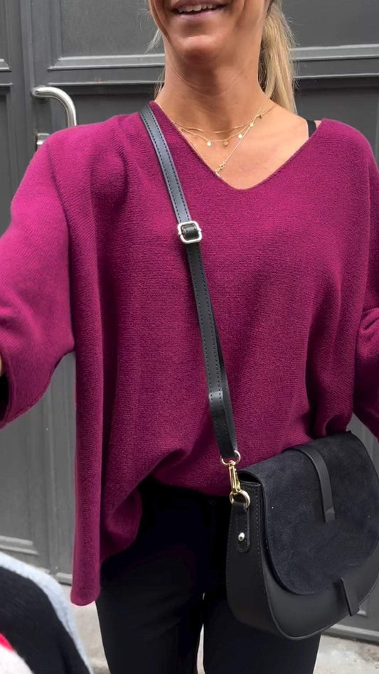 Top casual lavorato a maglia a maniche lunghe con scollo a V e maniche lunghe da donna