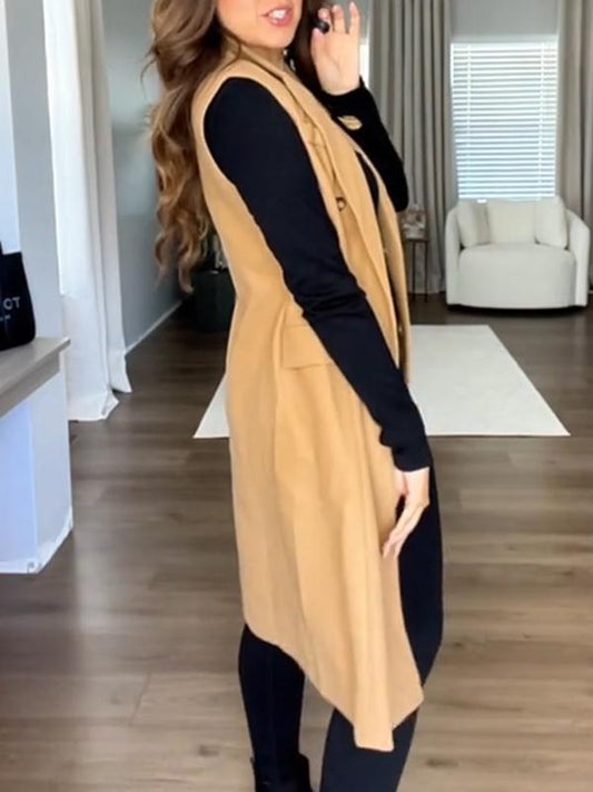 Cappotto lungo senza maniche con cappuccio e cerniera da donna
