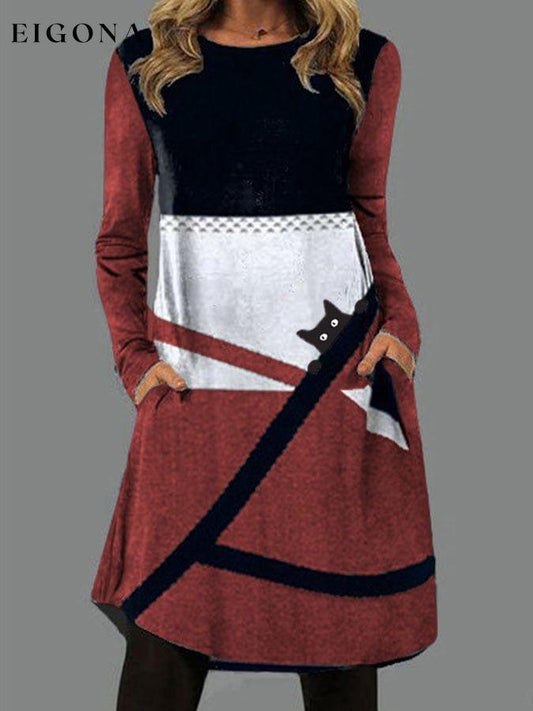 Abito con tasca girocollo stampato