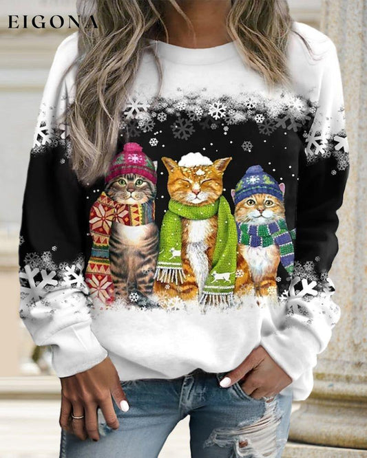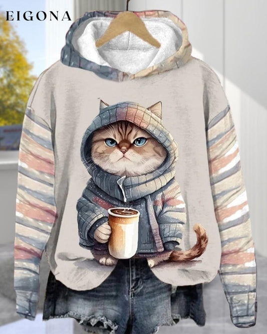 Felpa con cappuccio a maniche lunghe con motivo gatto