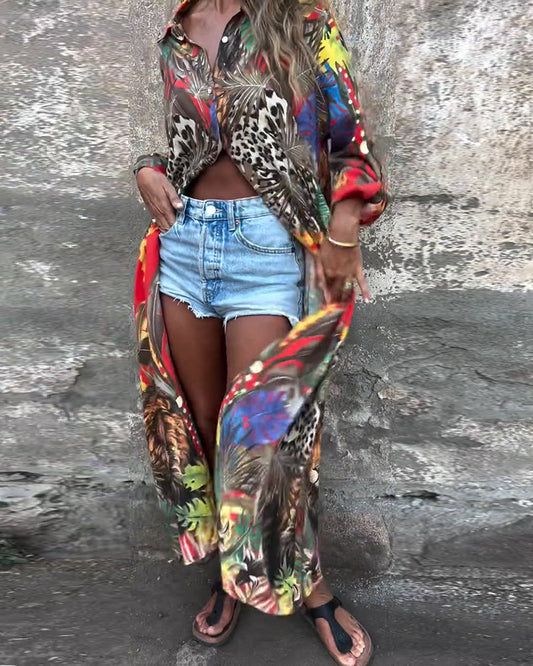 Elegante abito con stampa leopardata e maniche a sbuffo