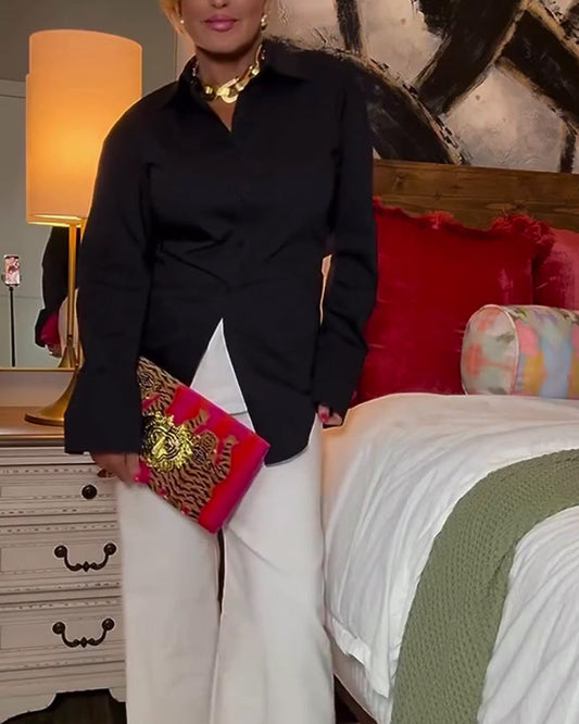 Casual Long-Sleeve Cutout Blouse