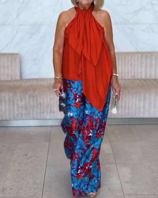 Stylish Leopard Print Wide-Leg Pants Set
