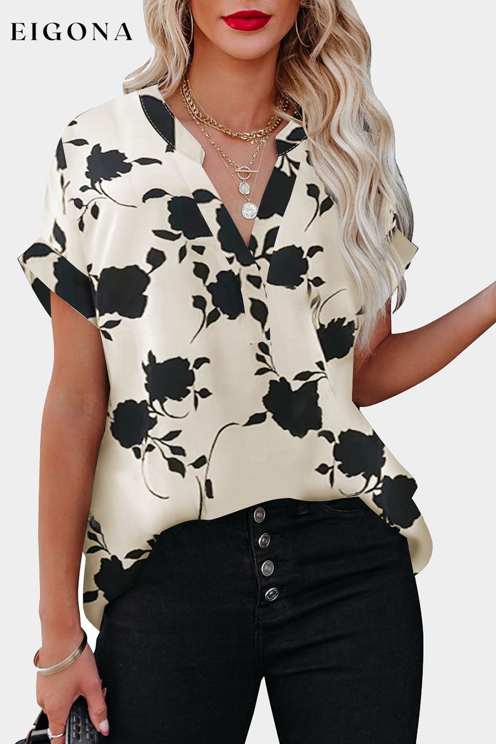 - Questo top a maniche corte è dettagliato con una stampa floreale nera