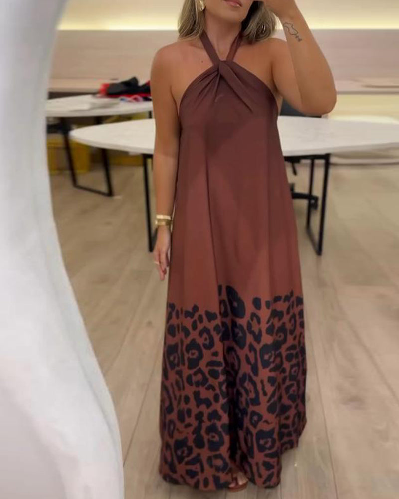 Abito con stampa leopardata e scollo all'americana