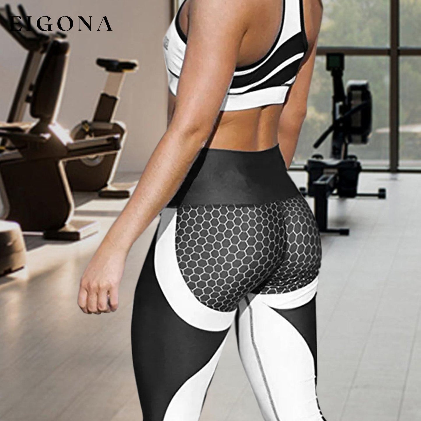 Pantaloni leggings da palestra per yoga fitness con design a nido d'ape a vita alta