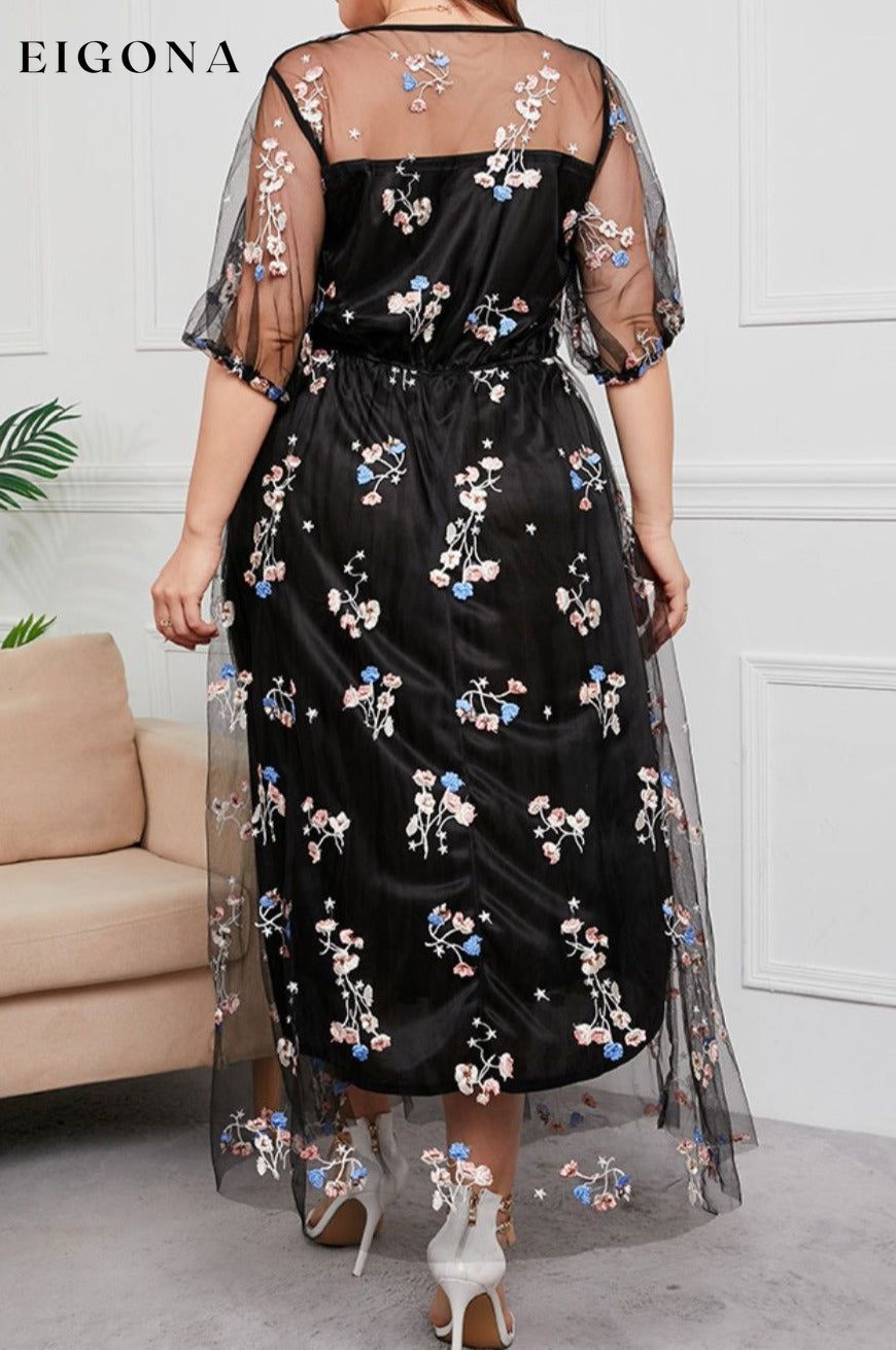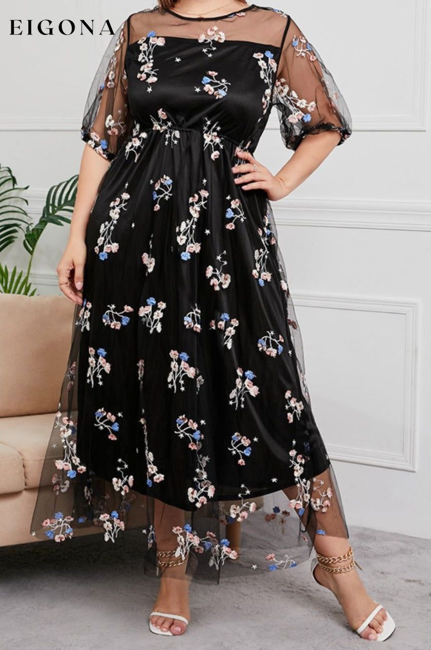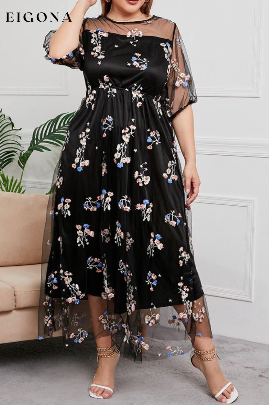 Abito maxi con scollo tondo in rete a strati taglie forti