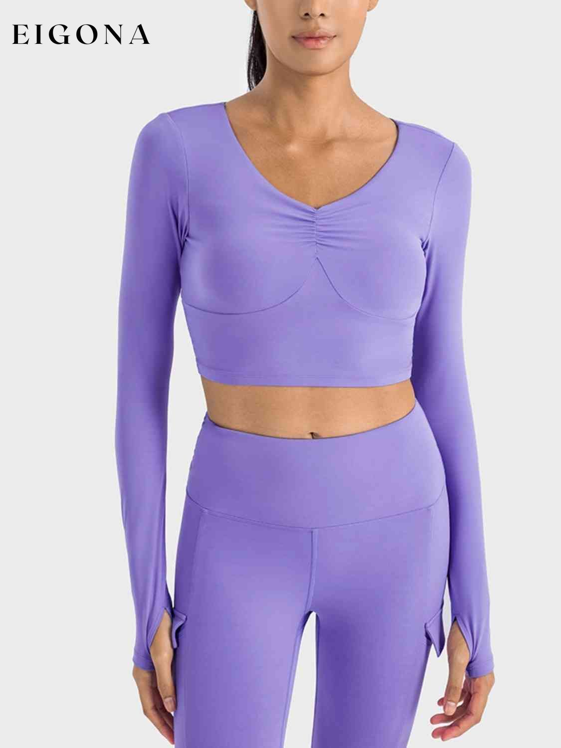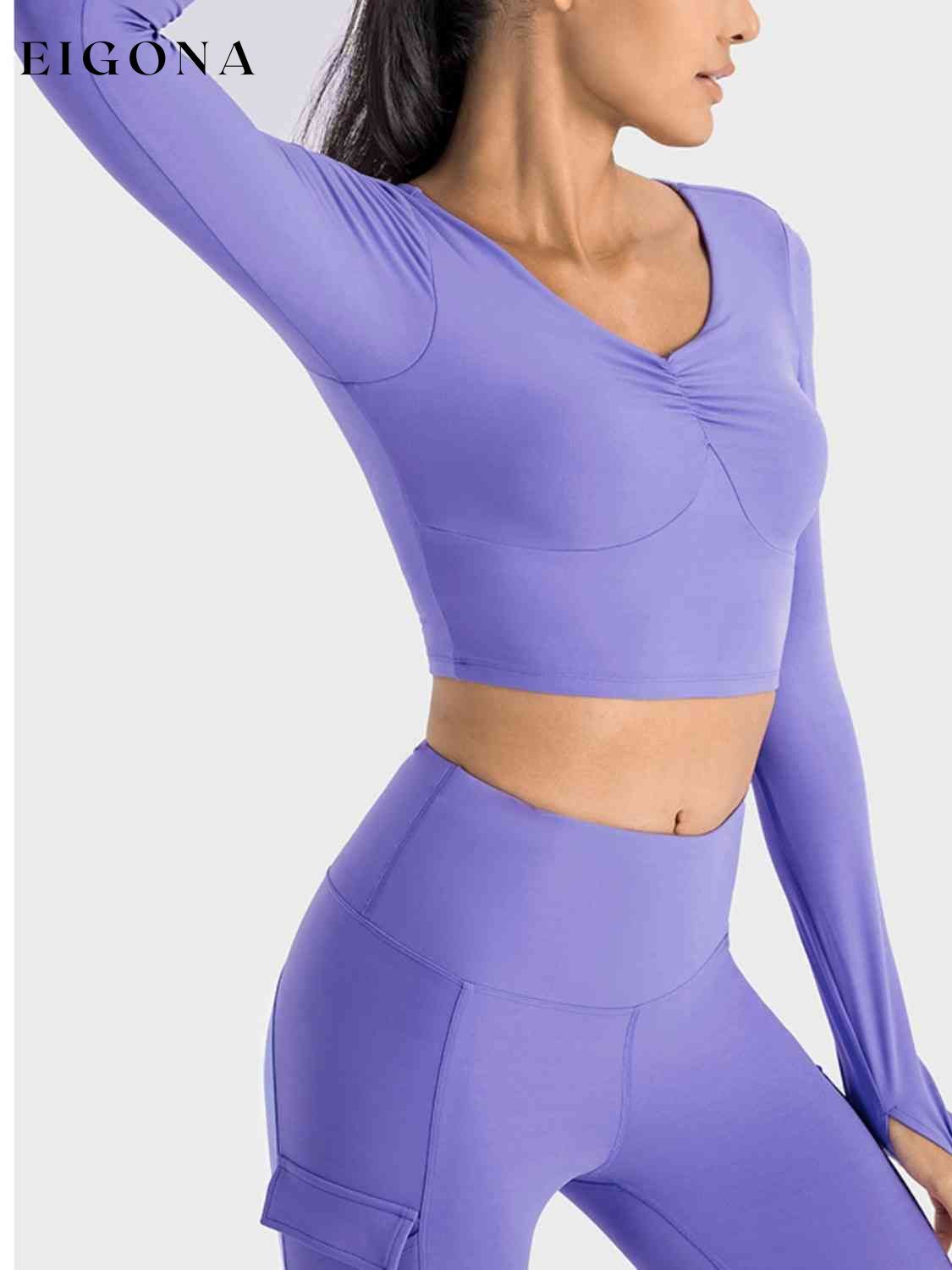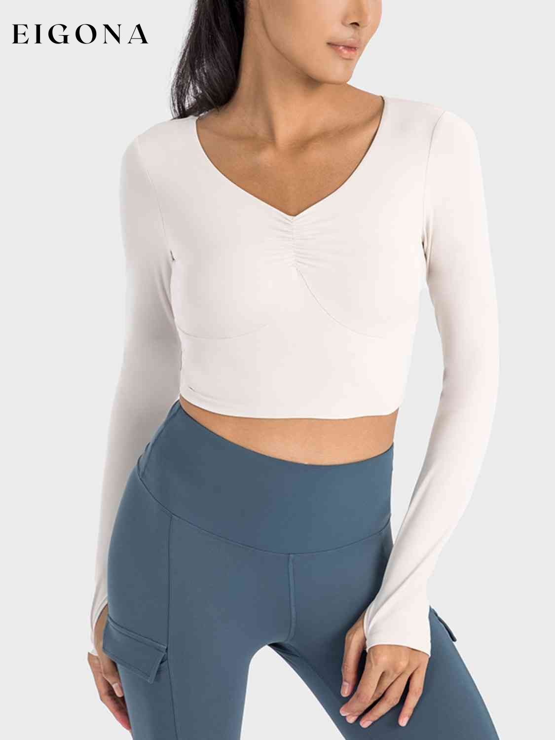 Top sportivo a maniche lunghe corto con arricciature
